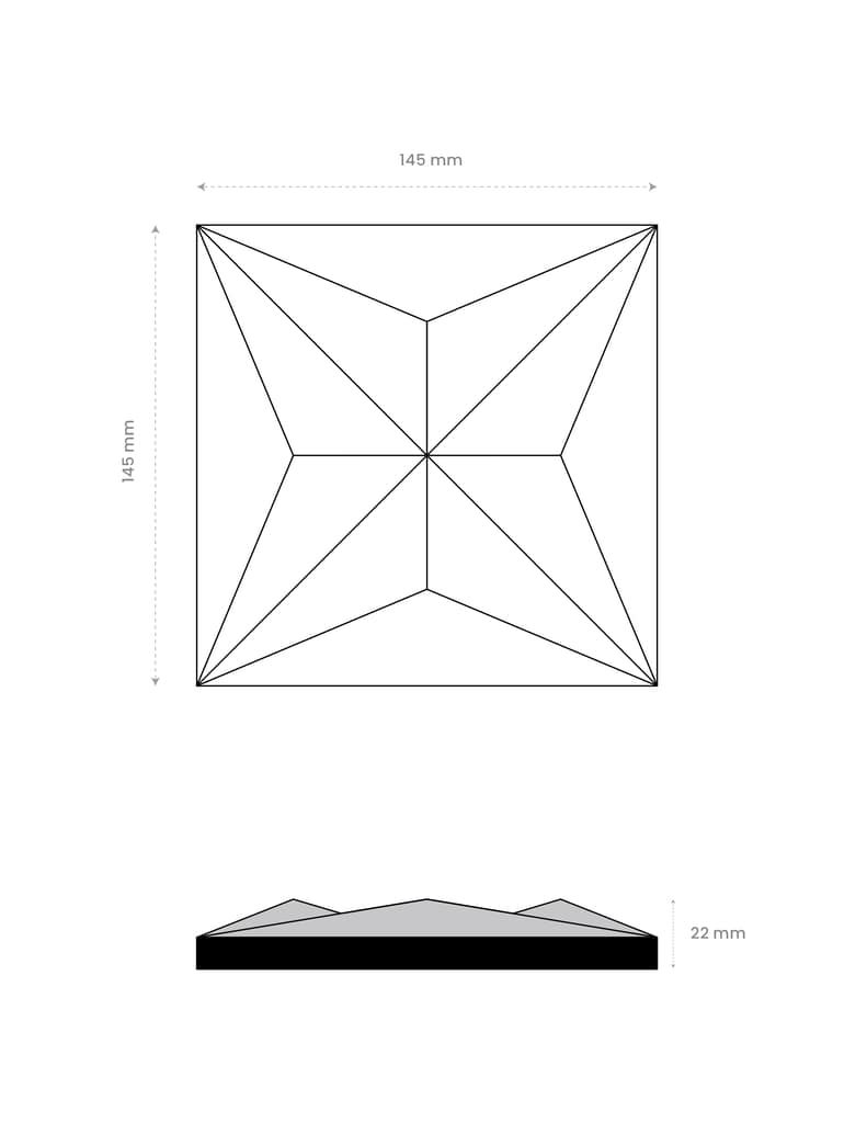 Apex emerges like a crystalline form etched in stone, its sharp facets reflecting light as if cut from raw mineral. Each plane fractures shadow and brilliance, turning the wall into a sculpted landscape of depth. Strong yet refined, it carries the timeless clarity of crystal within an architectural frame.
